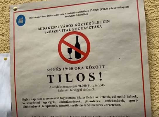 6 – 19 óra között TILOS a szeszes ital fogyasztás Budakeszi közterületein