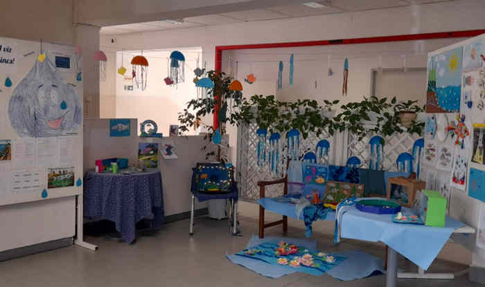 Iskolánk Knáb épületében egy csodaszép látvány-kiállítás fogadott mindenkit a mai napon, a Víz Világnapja alkalmából, melyet az angol két tanítási nyelvű és a SZIA+ tagozat osztályai készítettek el. A kiállítás zseniális látványelemekkel, művészeti megoldásokkal tarkította az aulát, melyben csak gyönyörködni tudtunk.